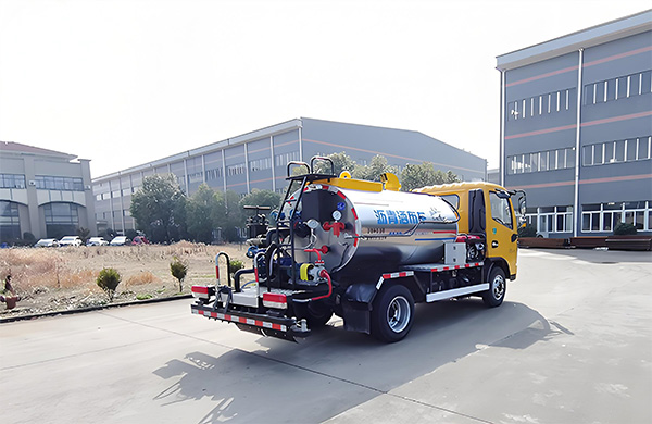 A blue license plate and a C license are required for driving. There are no restrictions on entering and leaving the urban area. 2. The total length of the vehicle is 5.7 meters. With a short body, it is convenient for construction in the back streets and alleys of urban areas. 3. Equipped with a reducer, the vehicle speed slows down, making it suitable for manual spraying. 4. Standard intelligent type, the speed of the asphalt pump is adjustable to meet the requirements of different spraying volumes. 5. Each nozzle is controllable in the cab, and the width of the spray can be adjusted freely. 6. The heat transfer oil heating system features rapid temperature rise, excellent heat preservation effect, and can also remove demulsified asphalt at the bottom of the tank. 7. Vehicle-mounted diesel generator, providing power guarantee.