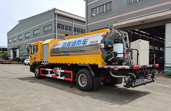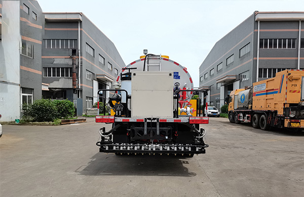 This vehicle is equipped with a Dongfeng D9 heavy-duty chassis, 9.00R20 steel wire tires, a wide-body double-layer frame, and has a strong weighing capacity. With a wheelbase of 3,950 meters and an overall length of 7.4 meters, it is convenient and flexible. The fully intelligent control system is equipped with a CPU and control module of Siemens brand and a touch screen of Taiwan Weilun. It can precisely control the amount of asphalt sprayed per square meter, freely switch between automatic control and manual control, and the spraying width can be controlled at will. The heat transfer oil system is configured to facilitate the removal of demulsified asphalt at the bottom of the asphalt tank, preventing people from climbing into the tank. When spraying hot asphalt, the heat loss in the pipeline is reduced through the circulation of heat transfer oil, ensuring a good spraying effect. Before each construction, by circulating the heat transfer oil, even if the asphalt pump is not cleaned at the end of the previous construction, the stuck asphalt pump can be dissolved. After the construction is completed, the oil can be returned to the tank with one click and the asphalt pump and spraying arm can be cleaned with one click to prepare for the next use.