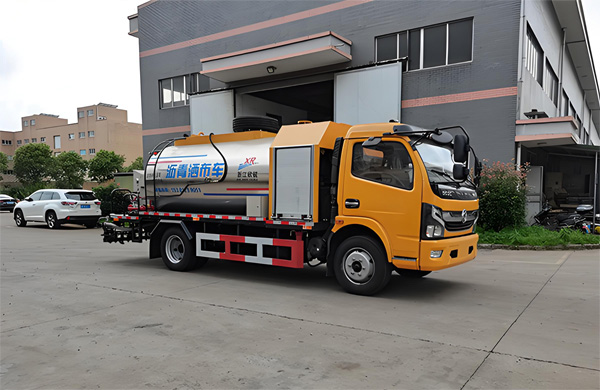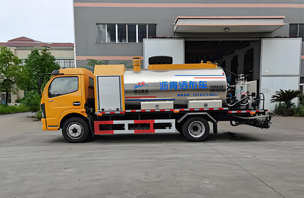 This asphalt spreader has an asphalt tank capacity of 6.3 cubic meters. It is equipped with an intelligent control system that allows for computer setting of the spraying volume and width, precisely controlling the spraying volume. The intelligent nozzle enables the spraying width to be adjusted freely within a range of 4.5 meters. It can be operated by one person from the cab, which is simple, convenient and highly reliable. The heating system adopts the heat transfer oil method, which has a fast heating speed. The external asphalt pump and pipelines all have heating and insulation functions. The vehicle is equipped with a fully automatic burner and generator to meet the heating needs at any time. It adopts Dongfeng chassis and has an engine power of 125 kilowatts (170 horsepower), providing strong performance.